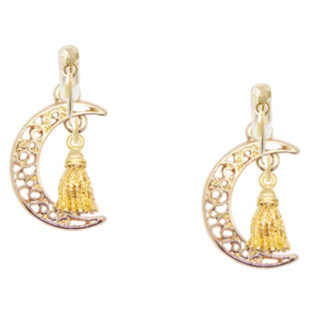 パーツ部分:透かし三日月チャーム、ゴールドタッセルチャーム